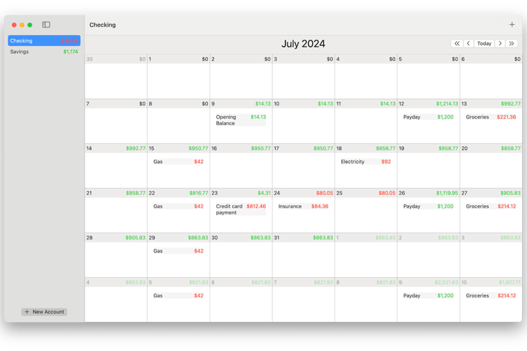 An intuitive calendar view of all your income and expenses that makes monthly budgeting a breeze